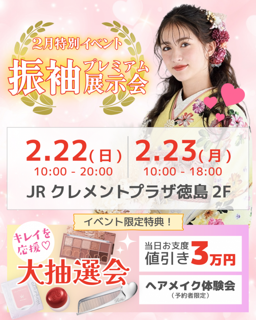 このたび、2月限定の特別イベント「振袖プレミアム展示会」を開催いたします。