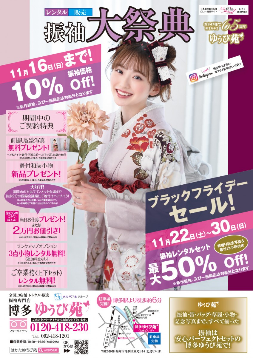 振袖・帯・小物合わせて2000点以上の豊富な品揃え。最新トレンドから王道古典柄、リーズナブルな価格帯から上質な逸品まで幅広いセレクションをご用意しております。お客様お一人ひとりのご希望に寄り添ったご案内と、柔軟な価格設定でご安心とご満足いただけるあなただけの一着を提案いたします。ぜひお気軽にご来店・ご相談ください。