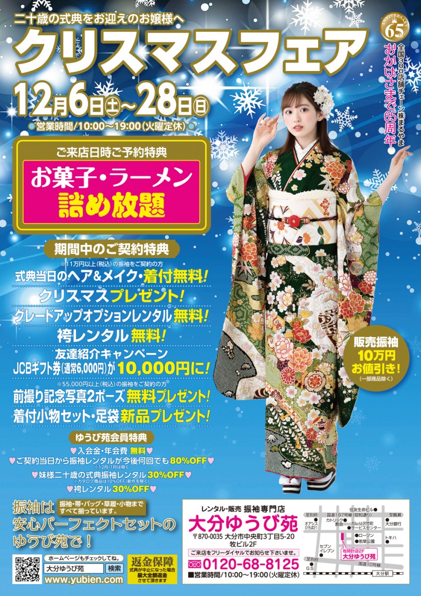 西日本最大級の振袖レンタルショップ 大分 ガレリア竹町、大分ゆうび苑です。